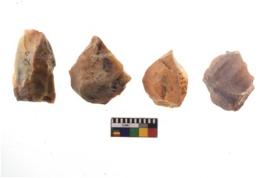 | Description / विवरण | There are n 4 of utilized worked cores and show irregular scar pattern on both dorsal and ventral side. One has a flat base. |