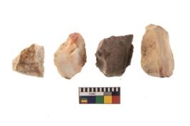 | Description / विवरण | There are n 4 of utilized worked cores and show irregular scar pattern on both dorsal and ventral side. Two have a broken tip. |
