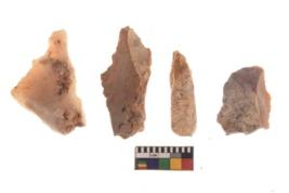 | Description / विवरण | There are n 4 of utilized worked cores and show irregular scar pattern on both dorsal and ventral side. Three are tapering at one end. |