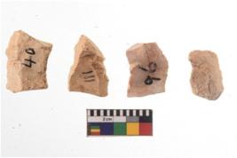 | Description / विवरण | There are n 4 of utilized worked cores and show irregular scar pattern on both dorsal and ventral side. Three have a broken tip. |