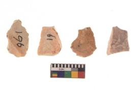 | Description / विवरण | There are n 4 of utilized worked cores and show irregular scar pattern on both dorsal and ventral side. Three have broken tip. |