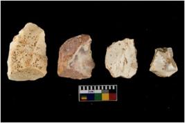 | Description / विवरण | There are n 4 cores. There are multi directional irregular scar pattern on both dorsal and ventral face of the cores. Some have blunted edges and some have round edges. |