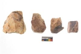 | Description / विवरण | There are n 4 of utilized worked cores and show irregular scar pattern on both dorsal and ventral side. Three have a broken tip. |