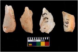 | Description / विवरण | There are n 4 of utilized worked cores and show irregular scar pattern on both dorsal and ventral side. Onw has a broken tip. |