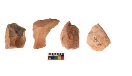 | Description / विवरण | There are n 4 of utilized worked cores and show irregular scar pattern on both dorsal and ventral side. Two have a flat base. |