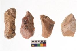 | Description / विवरण | There are n 4 of utilized worked cores and show irregular scar pattern on both dorsal and ventral side. One is elongated in shape. |
