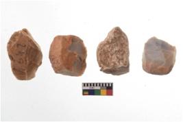 | Description / विवरण | There are n 4 of utilized worked cores and show irregular scar pattern on both dorsal and ventral side. Three have a broken tip. |