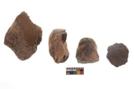 | Description / विवरण | There are n 4 of utilized worked cores and show irregular scar pattern on both dorsal and ventral side. One has a flat base. |