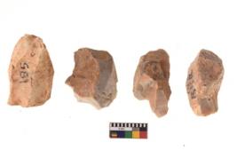 | Description / विवरण | There are n 4 of utilized worked cores and show irregular scar pattern on both dorsal and ventral side. They have sharp edges. |