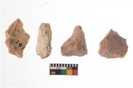 | Description / विवरण | There are n 4 of utilized worked cores and show irregular scar pattern on both dorsal and ventral side. One is elongated in shape. |