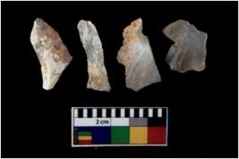 | Description / विवरण | There are n 4 utilized flake cores. There are multi directional irregular scar pattern on them. All of them are tapering at one end. |