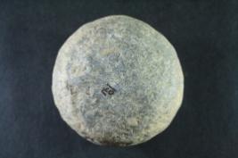 | Description / विवरण | It is a ball made in stone. Colour is black. Big cuts weavy lines on its surface. |