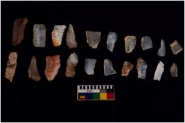 | Description / विवरण | There are n 20 flakes tool; there are multidirectional irregular scar pattern on them; made of short flakes and few have tapering edges. |