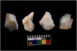 | Description / विवरण | There are n 4 of utilized worked cores and show multidirectional irregular scar pattern on both dorsal and ventral sides. |