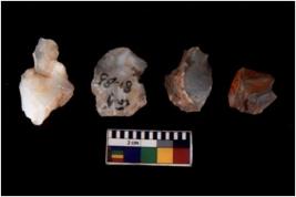 | Description / विवरण | There are n 4 of utilized worked cores. They show multidirectional irregular scar pattern and have sharp edges. One has a flat base. |