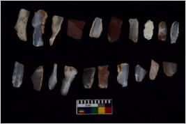 | Description / विवरण | There are n 20 Flake tool; There are multidirectional irregular scar pattern on them. few have blunt edges, Some of them are tapering at one end. |