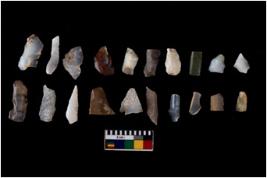 | Description / विवरण | Specimen of flakes tool with prominent flaking marks. It made up of a short flakes with sides trimmed. |