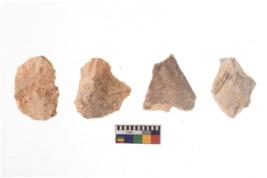 | Description / विवरण | There are n 4 of utilized worked cores and show irregular scar pattern on both dorsal and ventral side. Two have a broken tip. |