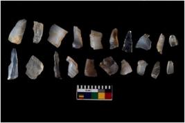 | Description / विवरण | There are n 20 Flake tool; There are multidirectional irregular scar pattern on them. few have blunt edges, Some of them are tapering at one end. |