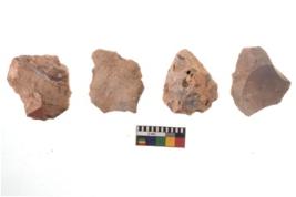 | Description / विवरण | There are n 4 of utilized worked cores and show irregular scar pattern on both dorsal and ventral side. Three are tapering at one end. |