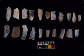 | Description / विवरण | There are n 20 flakes tool; there are multidirectional irregular scar pattern on them; made of short flakes and few have tapering edges. |