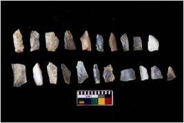| Description / विवरण | There are n 20 Flake tool; There are multidirectional irregular scar pattern on them. few have blunt edges, Some of them are tapering at one end. |