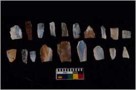 | Description / विवरण | There are n 20 flakes tool; there are multidirectional irregular scar pattern on them; made of short flakes and few have tapering edges. |