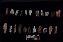 | Description / विवरण | There are n 20 flakes tool; there are multidirectional irregular scar pattern on them; made of short flakes and few have tapering edges. |