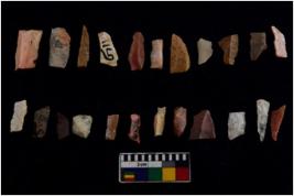 | Description / विवरण | There are n 20 Flake tool; There are multidirectional irregular scar pattern on them. few have blunt edges, Some of them are tapering at one end. |