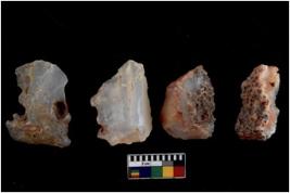 | Description / विवरण | There are n 4 flake cores. All of them are fully fluted flake cores without any trace of crested ridge flakes. Few are tapering at one end and some have sharp edges. |