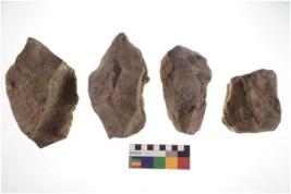 | Description / विवरण | There are n 4 of utilized worked cores and show irregular scar pattern on both dorsal and ventral side. One has a broken tip. |