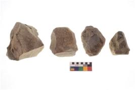 | Description / विवरण | There are n 4 of utilized worked cores and show irregular scar pattern on both dorsal and ventral side. Two have a broken tip. |