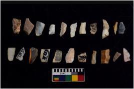 | Description / विवरण | There are n 20 flakes tool; there are multidirectional irregular scar pattern on them; made of short flakes and few have tapering edges. |