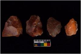 | Description / विवरण | There are n 4 flake cores. All of them are fully fluted flake cores without any trace of crested ridge flakes. Some of them have flat base and some have sharp edges. |