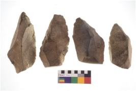 | Description / विवरण | There are n 4 of utilized worked cores and show irregular scar pattern on both dorsal and ventral side. They are tapering at one end. |