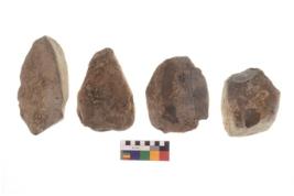 | Description / विवरण | There are n 4 of utilized worked cores and show irregular scar pattern on both dorsal and ventral side. One has a broken tip. |