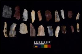 | Description / विवरण | There are n 20 Flake tool; There are multidirectional irregular scar pattern on them. few have blunt edges, Some of them are tapering at one end. |