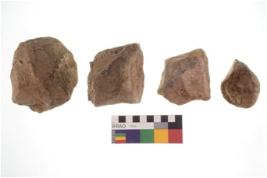 | Description / विवरण | There are n 4 of utilized worked cores and show irregular scar pattern on both dorsal and ventral side. Three have a broken tip. |
