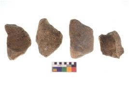 | Description / विवरण | There are n 4 of utilized worked cores and show irregular scar pattern on both dorsal and ventral side. One has a broken tip. |