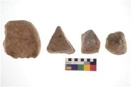 | Description / विवरण | There are n 4 of utilized worked cores and show irregular scar pattern on both dorsal and ventral side. Two have a broken tip. |