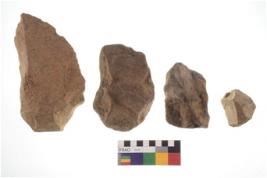| Description / विवरण | There are n 4 of utilized worked cores and show irregular scar pattern on both dorsal and ventral side. One has a broken tip. |