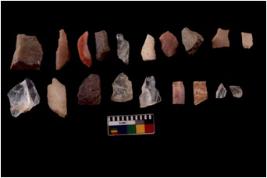 | Description / विवरण | There are n 20 Flake tool; There are multidirectional irregular scar pattern on them. few have blunt edges, Some of them are tapering at one end. |