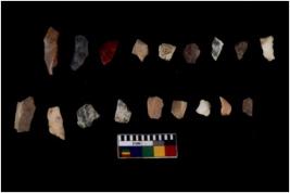 | Description / विवरण | Specimen of flakes tool with prominent flaking marks. It made up of a short flakes with sides trimmed. |