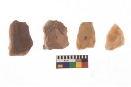 | Description / विवरण | There are n 4 of utilized worked cores and show irregular scar pattern on both dorsal and ventral side. Three have a flat base. |
