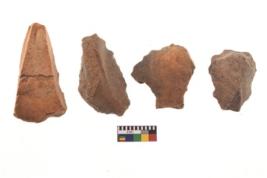 | Description / विवरण | There are n 4 of utilized worked cores and show irregular scar pattern on both dorsal and ventral side. Two are elongated in shape. |