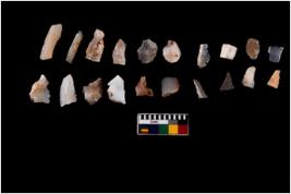 | Description / विवरण | There are n 20 flakes tool; there are multidirectional irregular scar pattern on them; made of short flakes and few have tapering edges. |