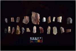 | Description / विवरण | There are n-20 of microliths, all of them are chert. Some of them are partially broken. They show variation in colour, size and shape. Some of them are blunted back baldes, points, triangles, trapezes, crescent and truncated blades. |