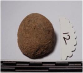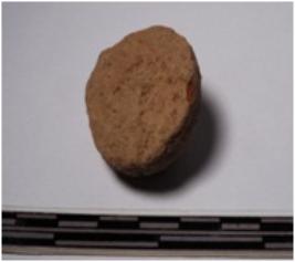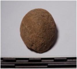 | Description / विवरण | A fragment of a terracotta round shaped sling ball of smooth surface. |