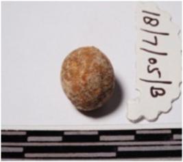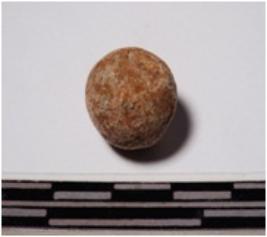 | Description / विवरण | A terracotta small sling ball round in shape of smooth surface. |