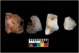 | Description / विवरण | There are n 4 flake cores. All of them are fully fluted flake cores without any trace of crested ridge flakes. Some are tapering at one end and some have sharp edges. |
